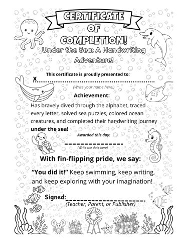 Watch your child's eyes light up as they practice letters alongside friendly dolphins, playful seahorses, and colorful coral reefs. Our expertly crafted activities combine essential fine motor skill development with the magic of ocean discovery, making every page a new adventure in learning.